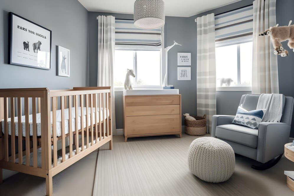 - Priorize móveis funcionais e seguros: Menos é mais. Invista em móveis que ocupem pouco espaço, mas ofereçam funcionalidade, como berço com gavetas ou cômoda com trocador.