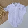 Body branco com detalhe bege infantil bebe manga longa Luxo Batizado Festas