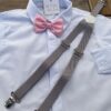 Kit Suspensório Cinza com Gravata Borboleta Rosa Infantil