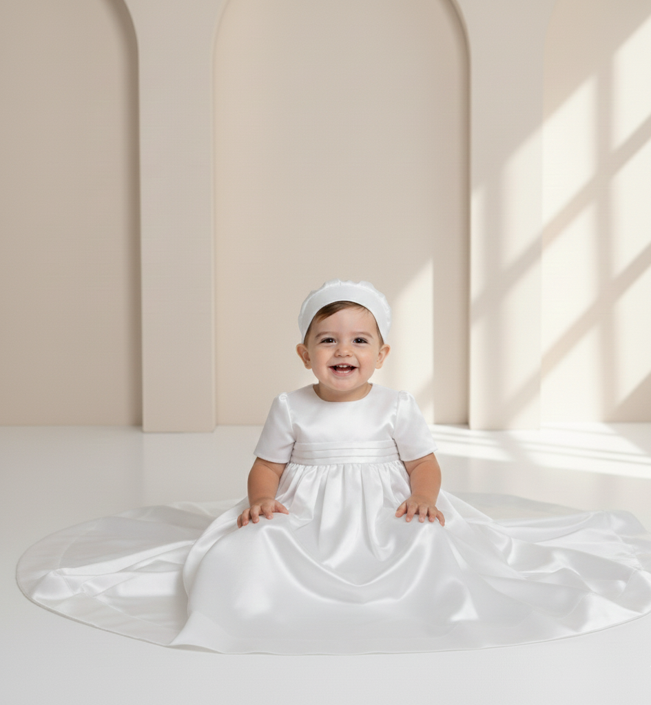 - Fácil de Vestir: O mandrião foi projetado para facilitar o vestir, com botões discretos e um corte que permite mobilidade e conforto ao bebê, garantindo que ele esteja tranquilo durante a cerimônia.