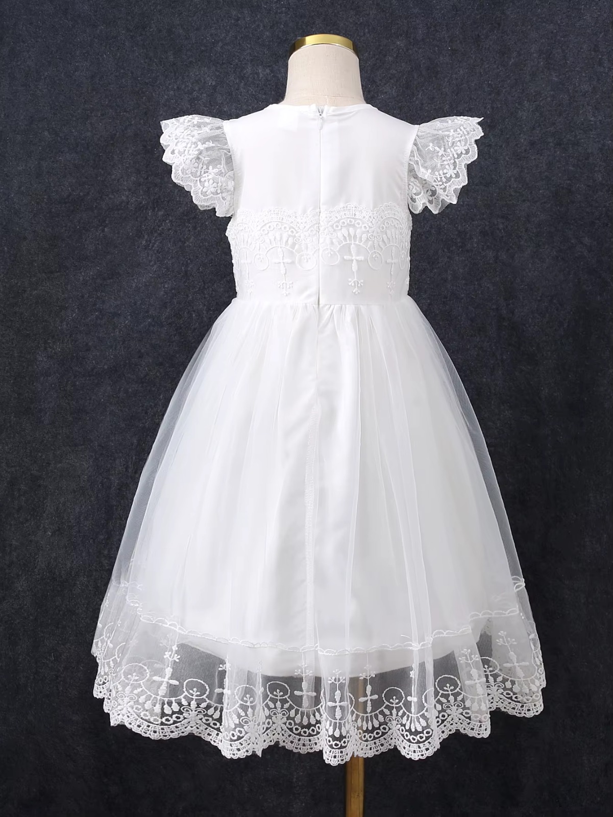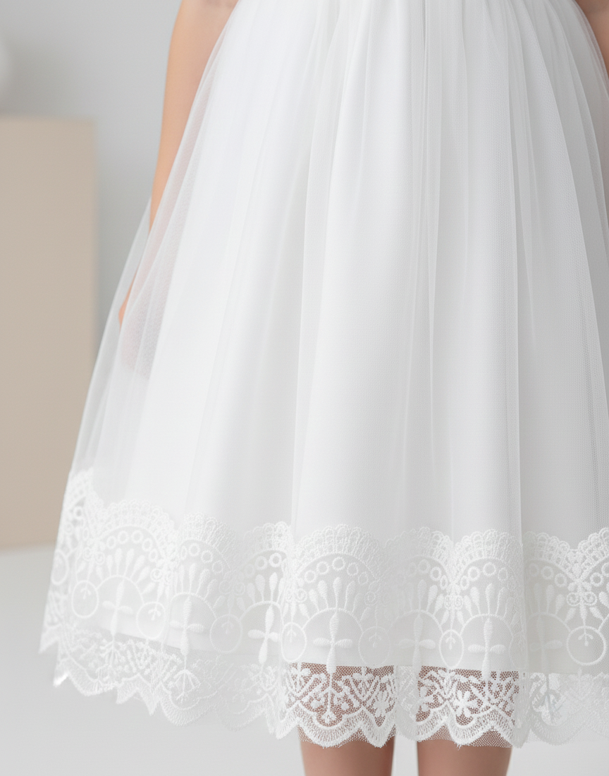 Vestido Infantil Ágata Branco em Tule Bordado Elegante Menina Primavera Verão Festa Daminha Batizado Premium Luxo