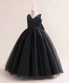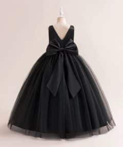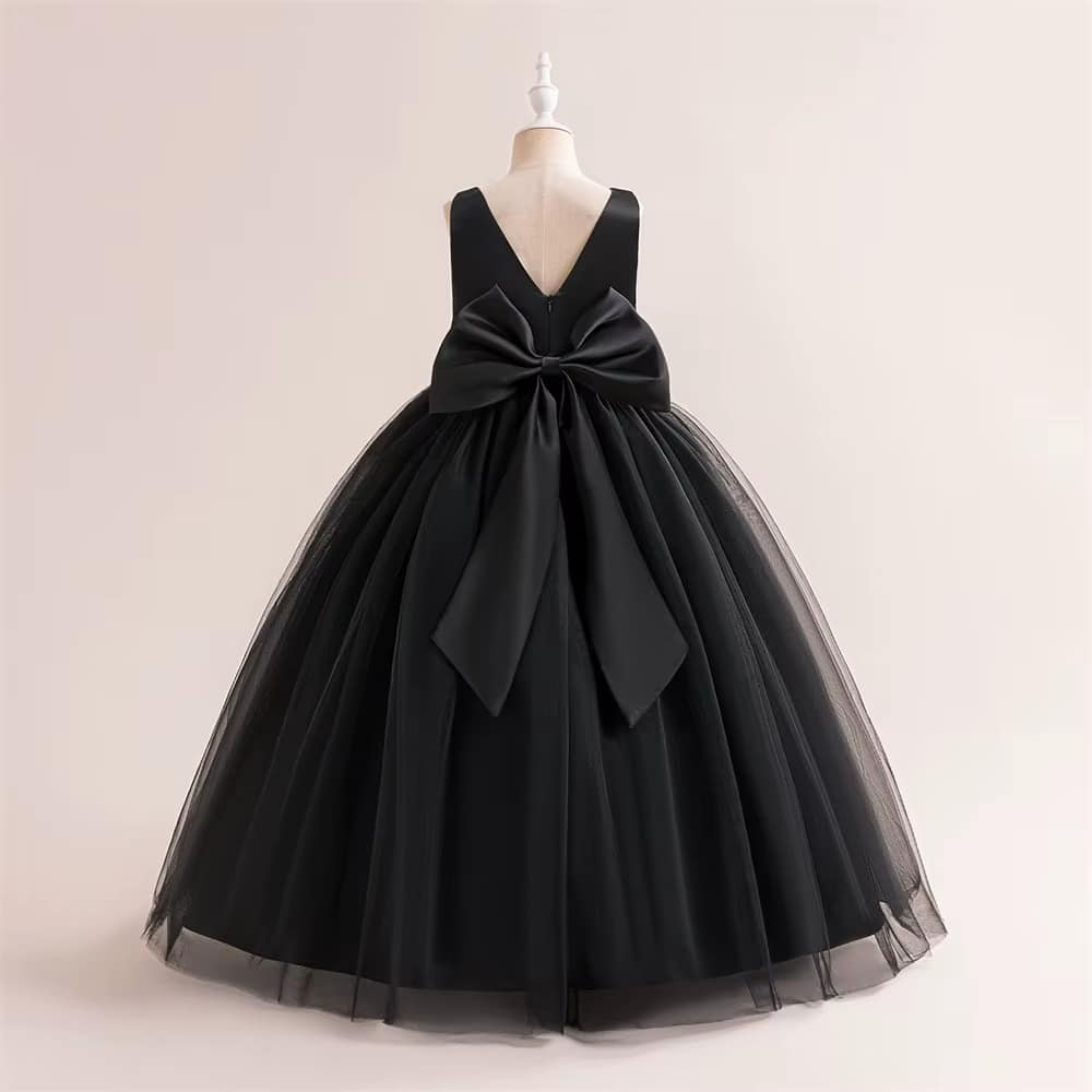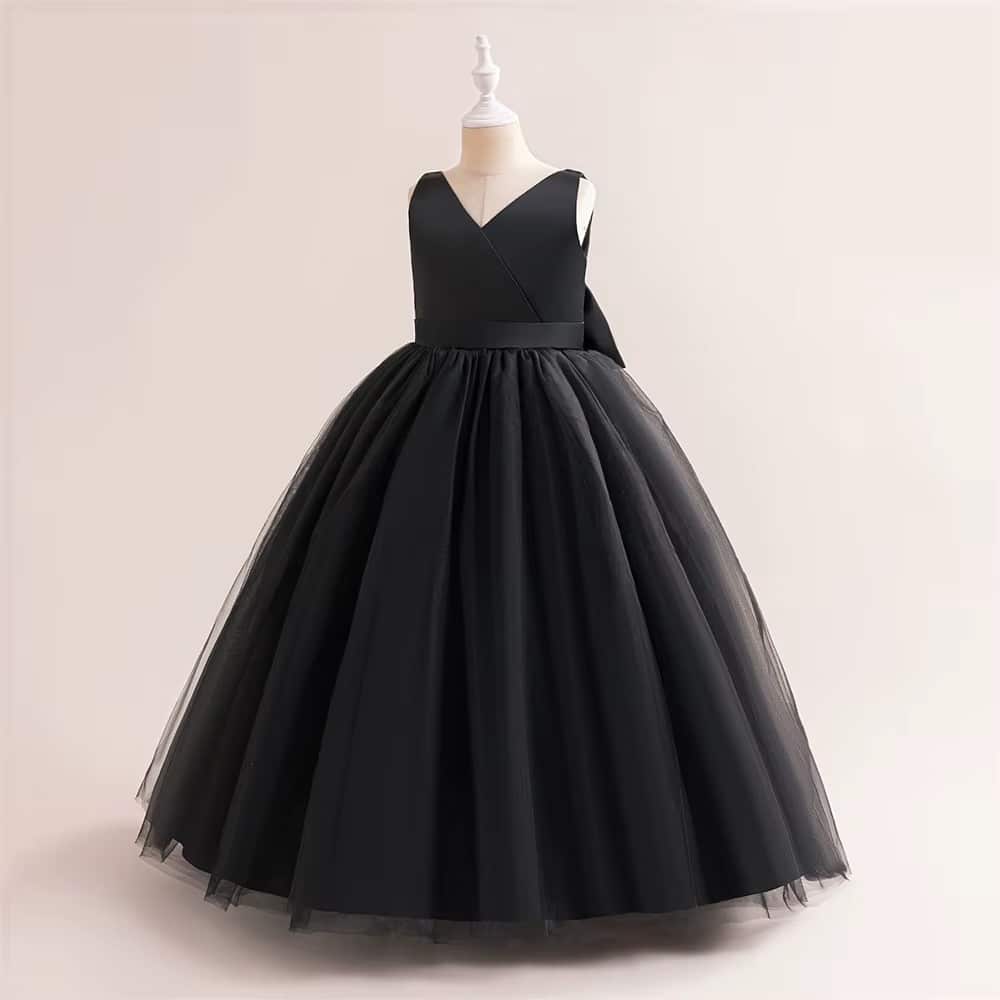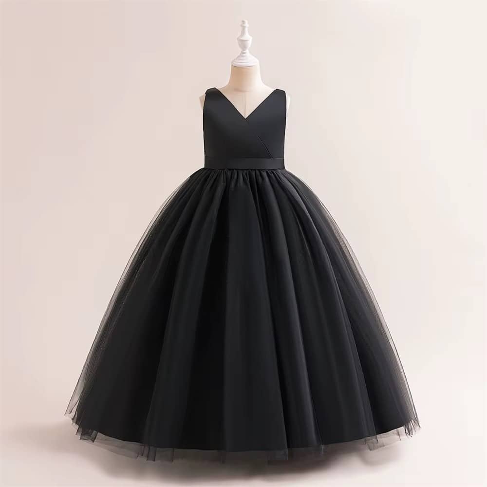 Vestido Infantil Julia Longo Preto em Cetim e Tule de Princesa Elegante Menina Festa Aniversário Formatura Premium Luxo