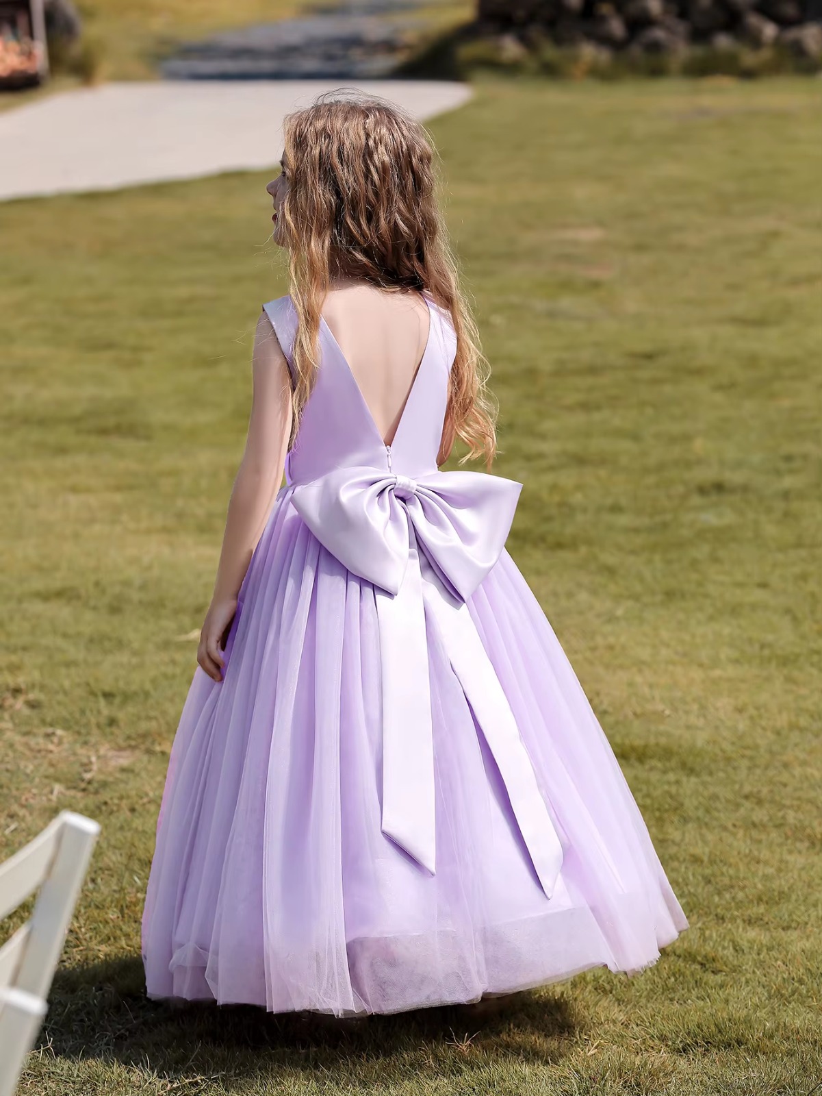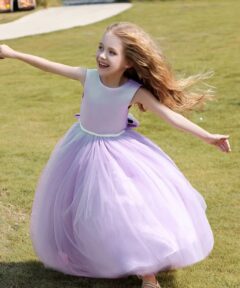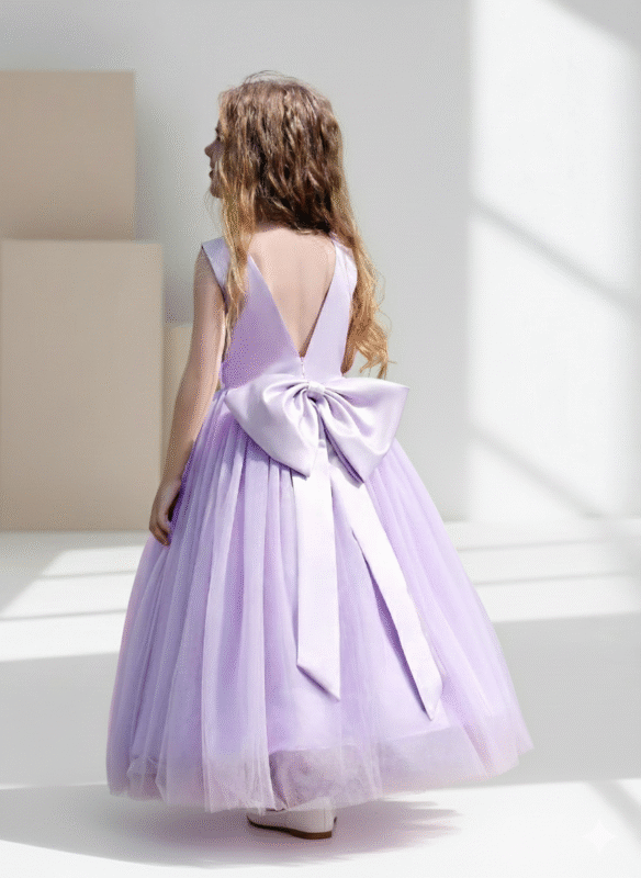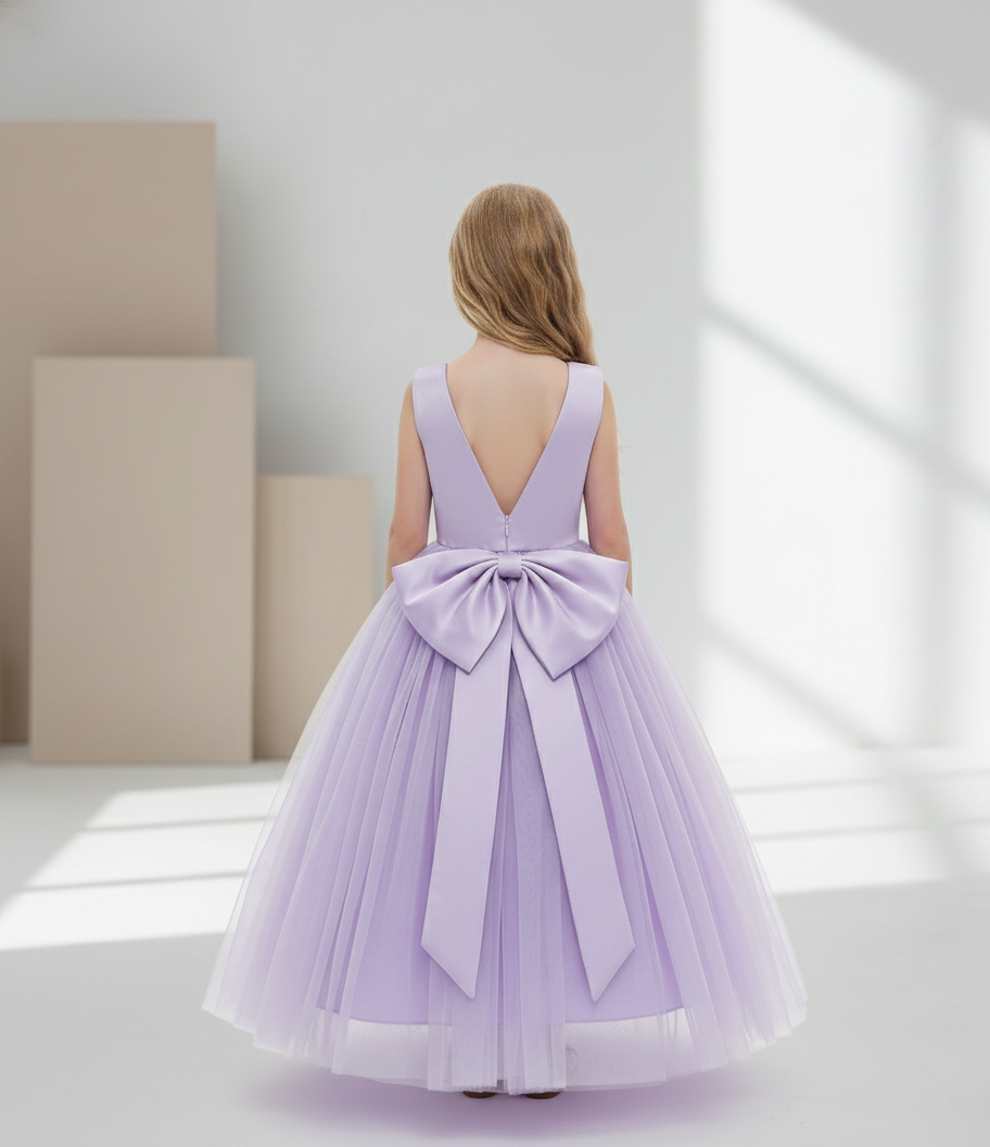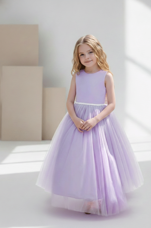 Vestido longo de Princesa Infantil Elegante, ideal para ocasiões especiais como festas, daminhas de honra. Este vestido lilás premium luxuoso é perfeito para tornar sua pequena princesa o centro das atenções.