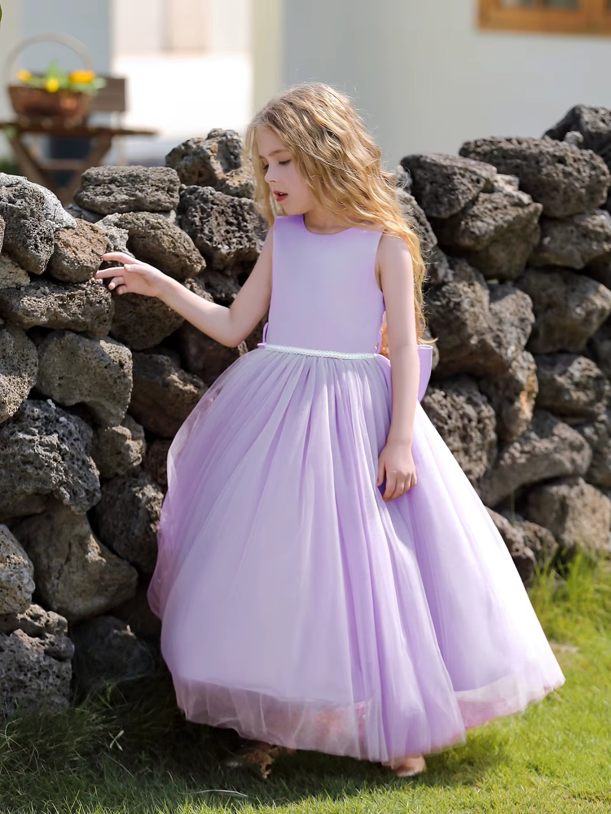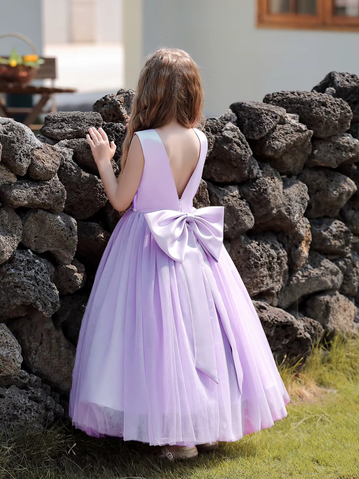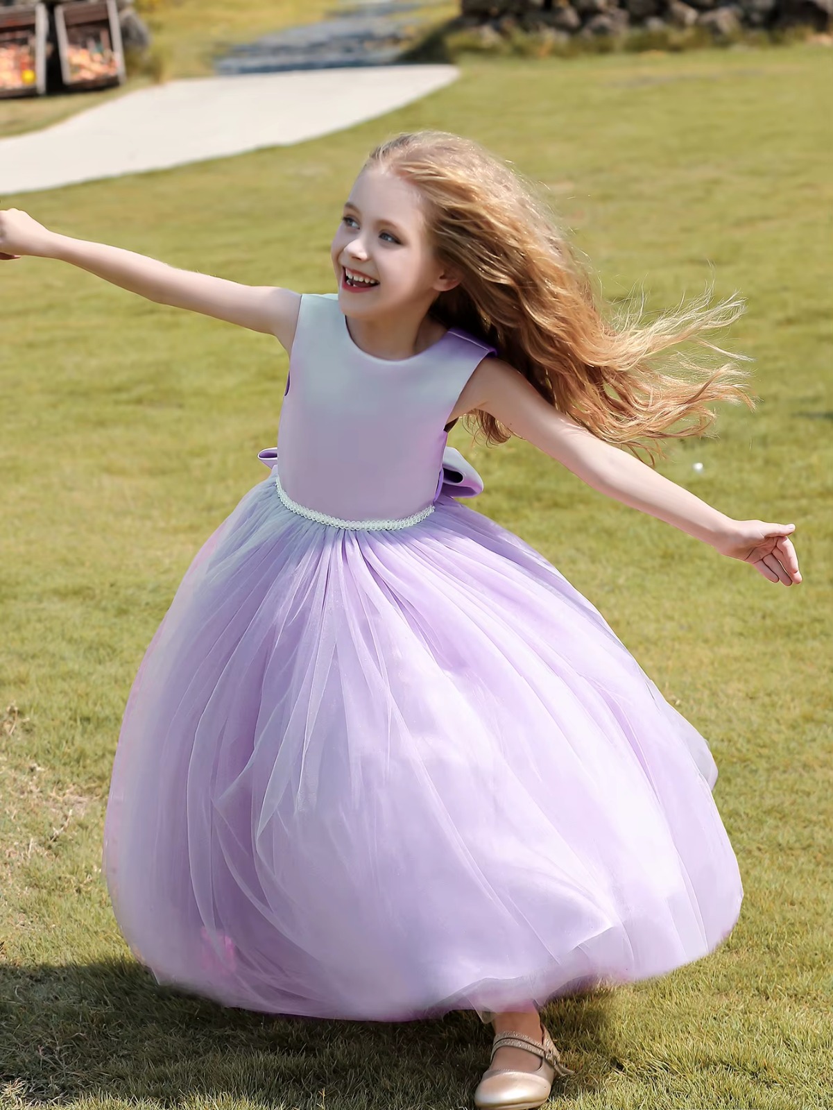 Vestido longo de Princesa Infantil Elegante, ideal para ocasiões especiais como festas, daminhas de honra. Este vestido lilás premium luxuoso é perfeito para tornar sua pequena princesa o centro das atenções.