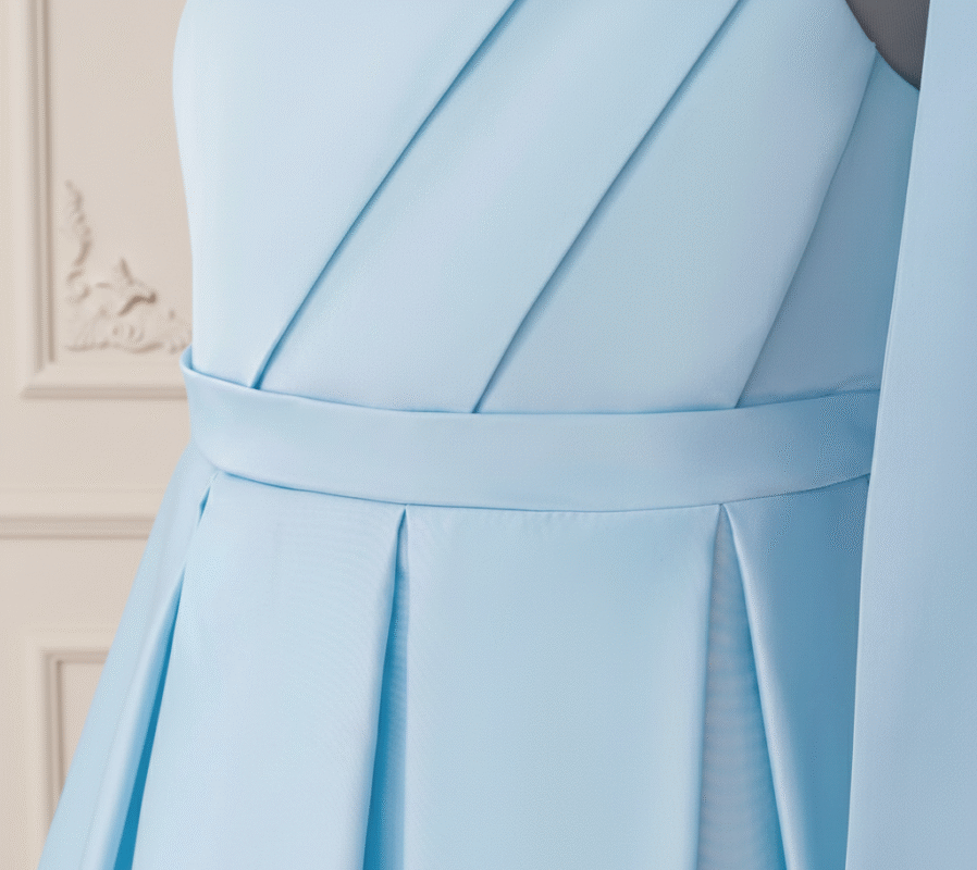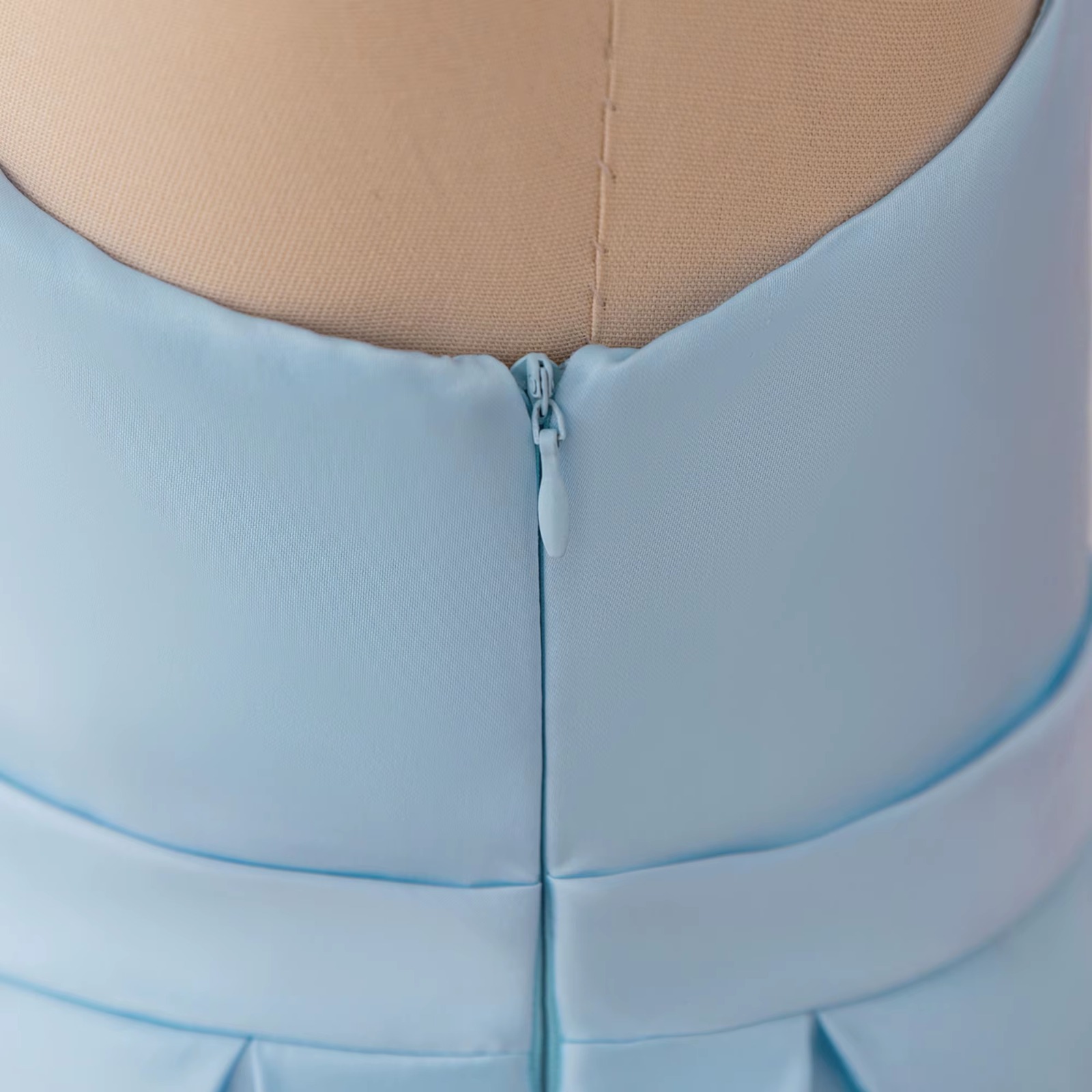 O modelo segue na cor azul bebê. Essa cor transmite sensação de pureza e delicadeza, perfeitas para ocasiões especiais como festas.