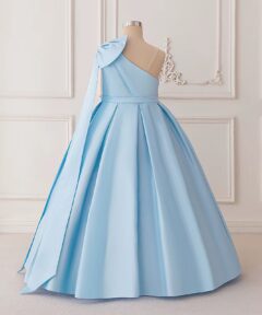 Vestido Infantil Marjorie Longo Azul Bebê em Cetim com Laço Ombro Festa Daminha Menina Premium Luxo