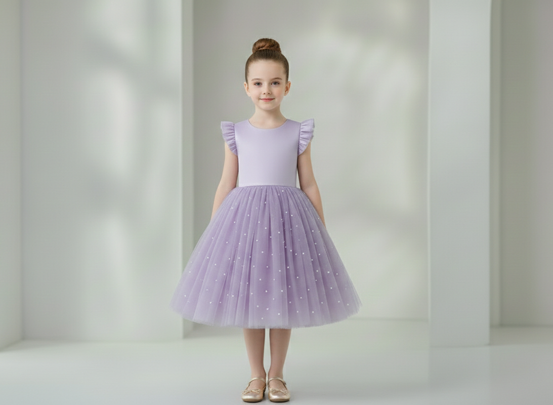 O vestido é decorado com tule encantador em todo o tecido, criando um visual encantador para uma criança. Além disso, o vestido apresenta o fechamento por botões zíper invisível, localizado nas costas. O Decote em V nas costas é um detalhe delicado que adiciona sofisticação e abertura ao vestido, complementando o estilo geral.