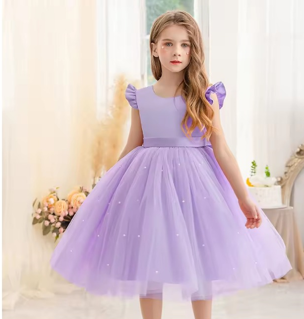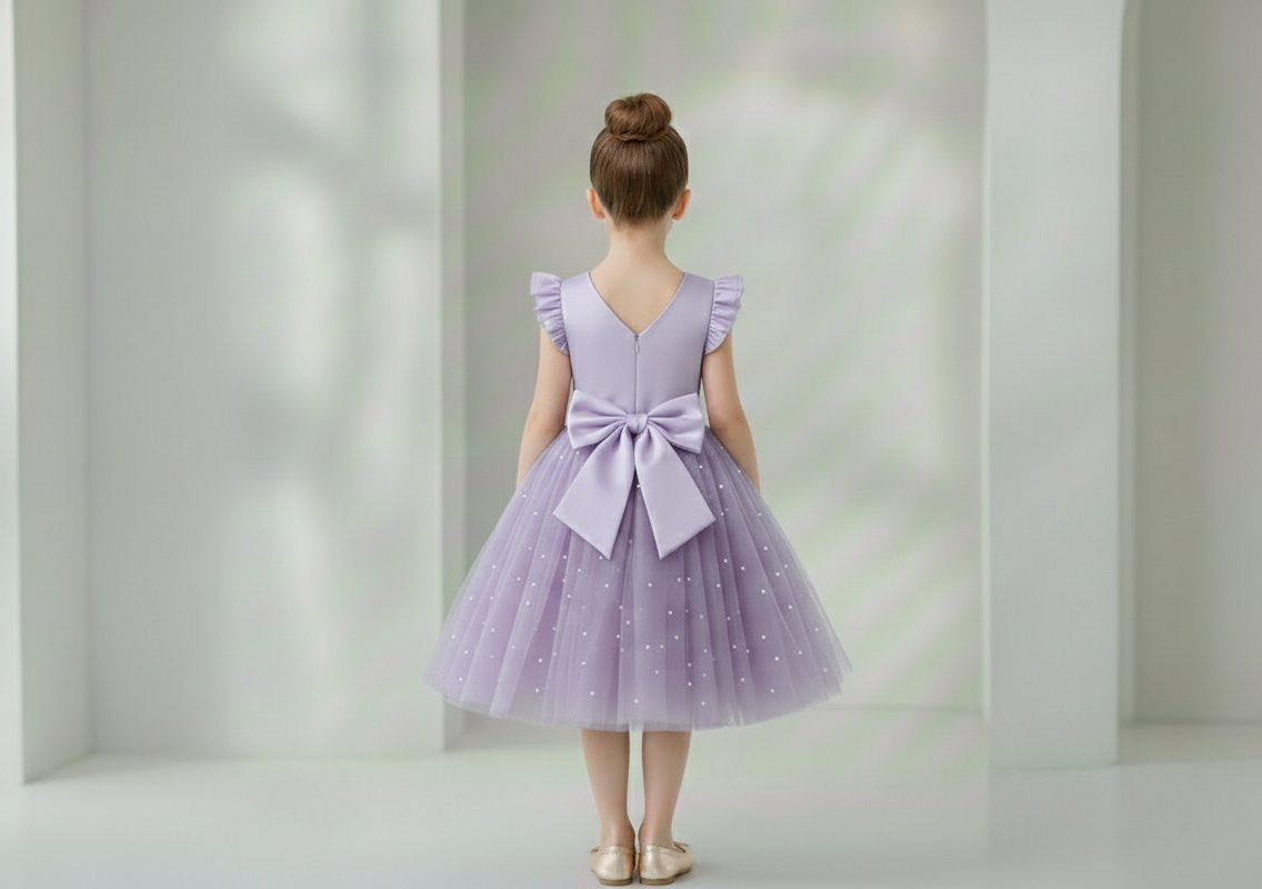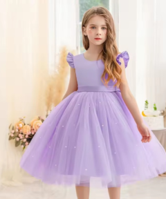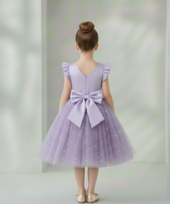 Vestido Infantil Melissa Lilás em Cetim e Tule com Costas em V e Laço Elegante Festa Daminha Menina Premium Luxo