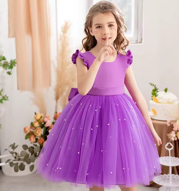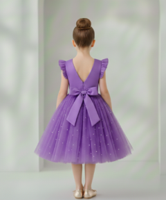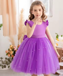 Vestido Infantil Melissa Roxo em Cetim e Tule com Costas em V e Laço Elegante Festa Daminha Menina Premium Luxo