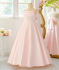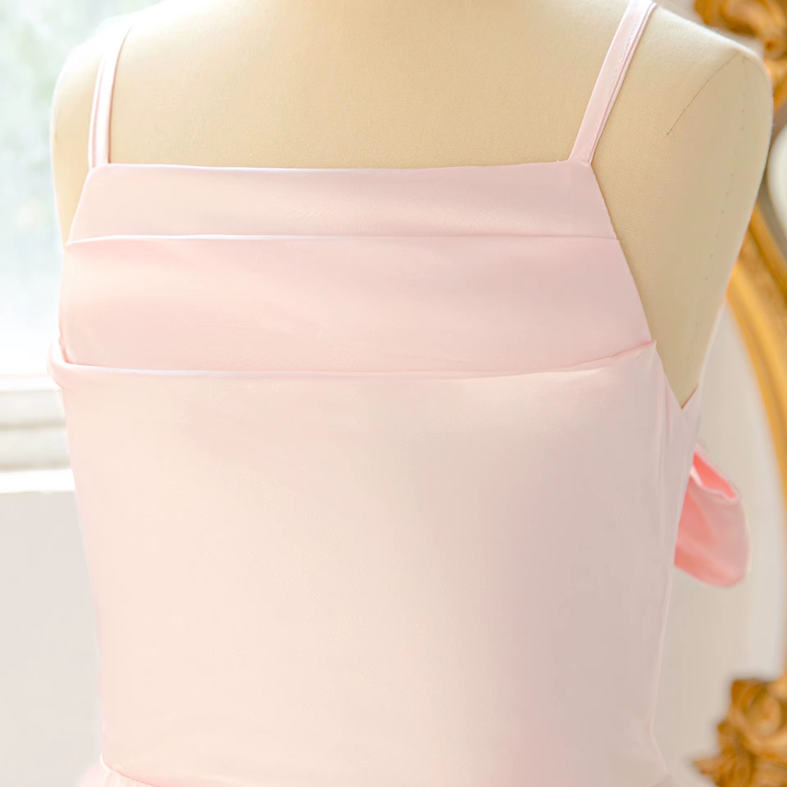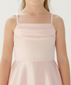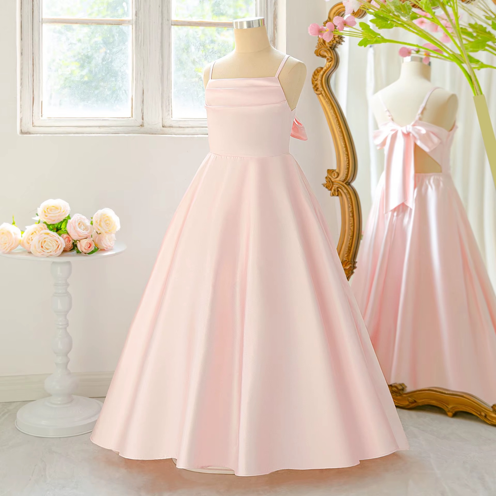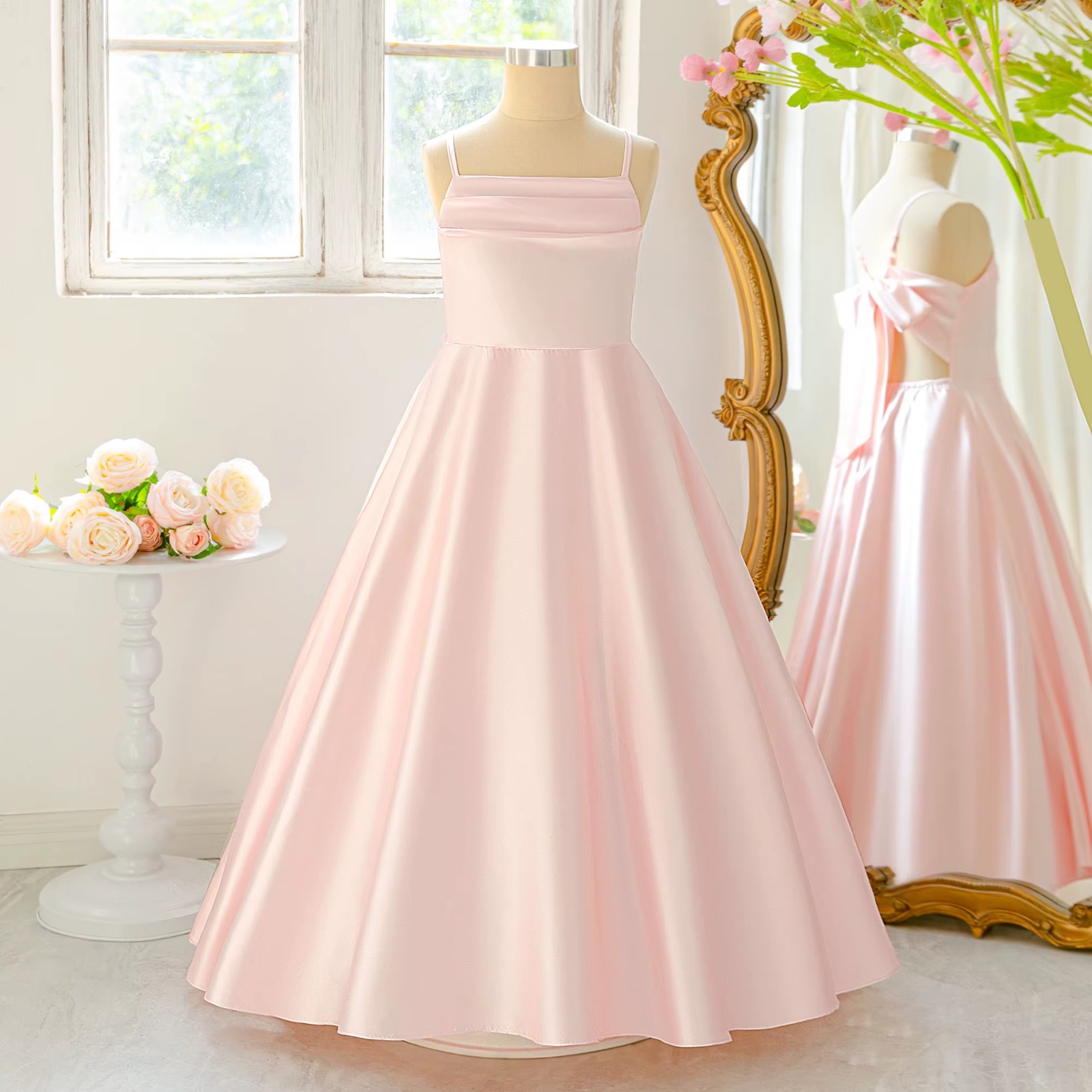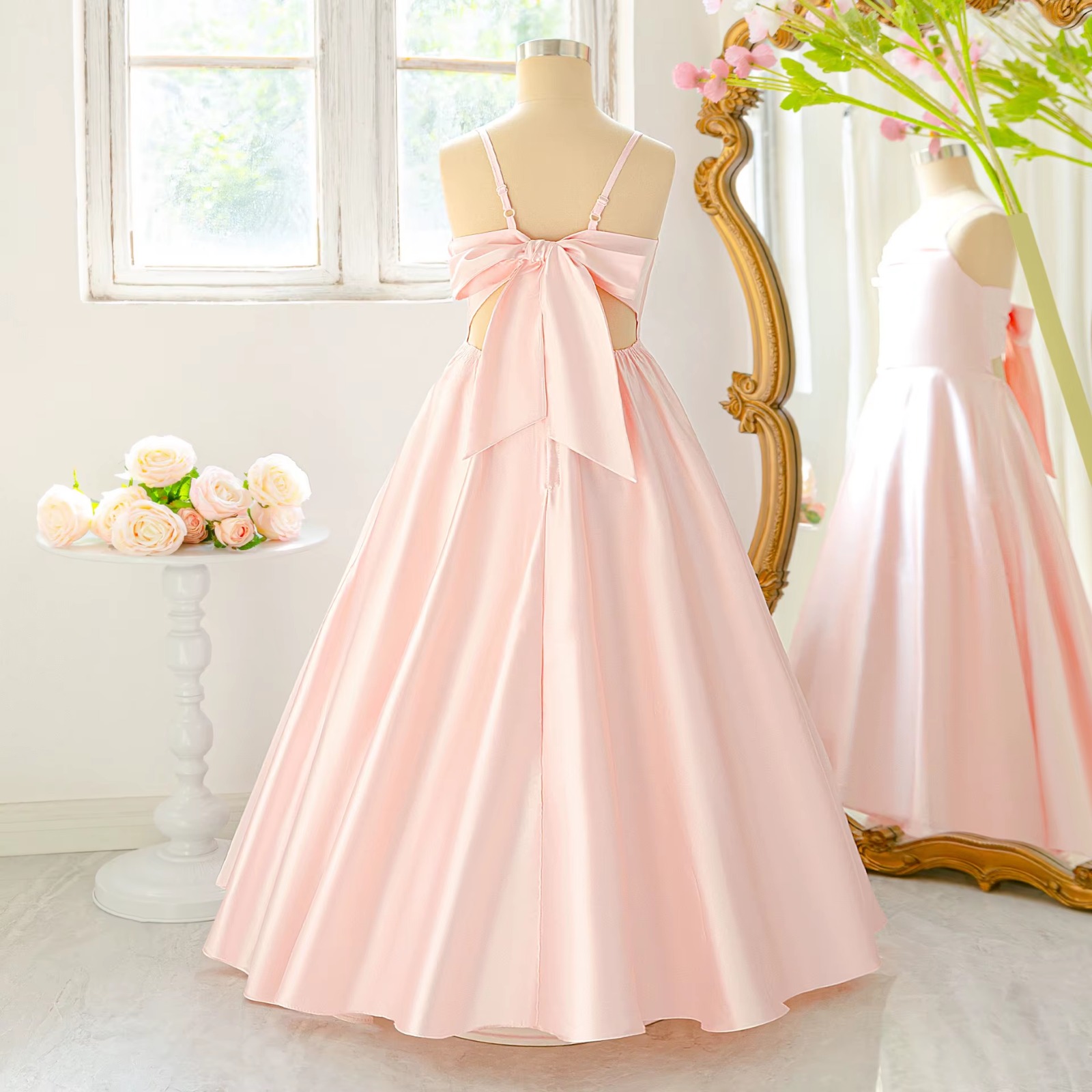 Vestido Infantil Serena Longo Rosa em Cetim de Alcinha com Nó e Laço Festa Daminha Menina Premium Luxo