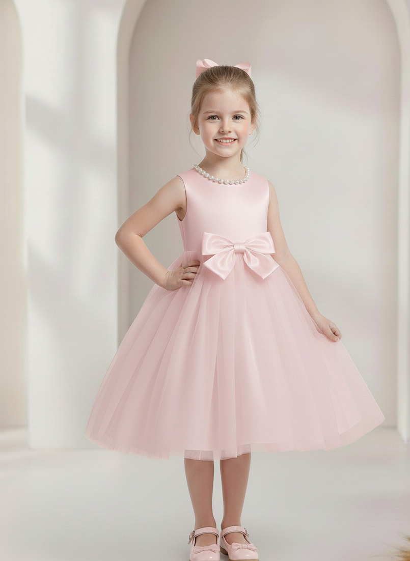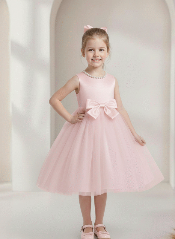 Vestido Infantil Elegante, ideal para ocasiões especiais como festas, daminhas de honra. Este vestido rosa premium luxuoso é perfeito para tornar sua pequena princesa o centro das atenções.